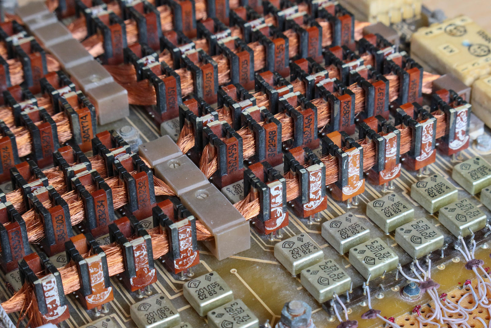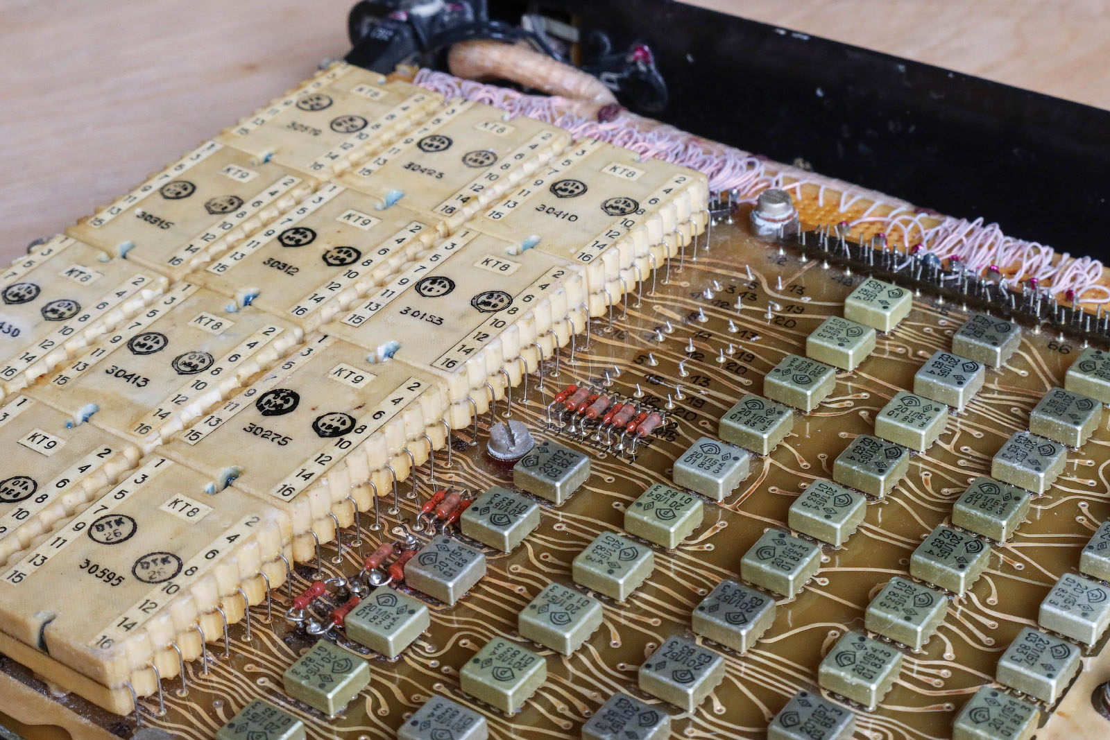 The memory part consists of 160 W-shaped ferrite cores, divided into 80 pairs. 512 code wires - address buses - pass through the cores. The memory capacity is 10 kilobytes.