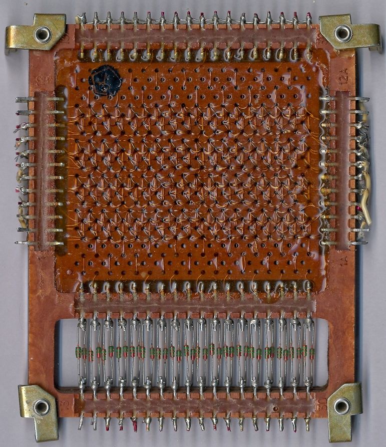 Размеры 6.5 см на 6.5 см. Объём памяти 100 бит. Ферритовое поле 10x10 (сплошное). Очень крупные ферритовые колечки.